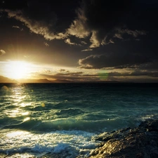 cliff, Mountains, sea