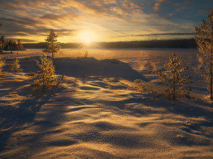 trees, Great Sunsets, clouds, chapel, roads, viewes, Field