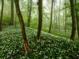 trees, Fog, Sunrise, Germany, viewes, Moselle River