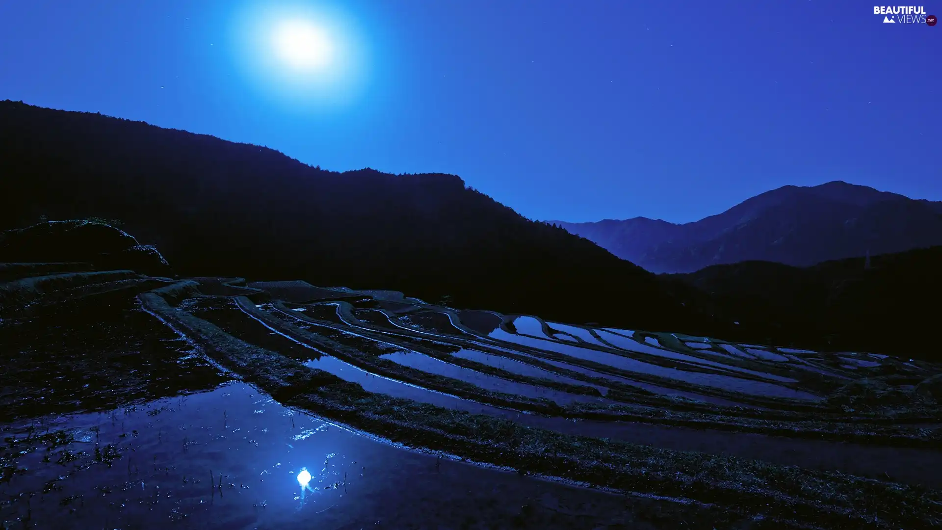 moon, Sky, rice, Night, field