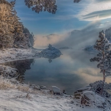 Glacier National Park, Mountains, Flowers, trees, Meadow, Montana State, The United States, viewes