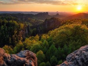Town, Great Sunsets, viewes, Mountains, winter, trees, Poland