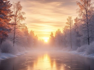 River, winter, Stones, forest, snow, lanterns, trees, viewes, Home