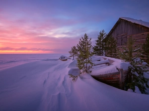 forest, snow, trees, River, winter, Snowy, viewes