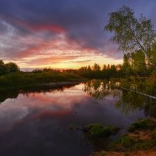 forest, cascade, viewes, Rocks, waterfall, trees, green