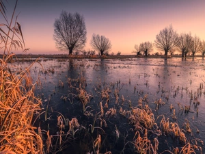 viewes, rocks, Sky, trees, Lake Ladoga, Pinkish, Russia