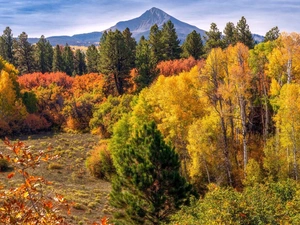 sea, Norway, Mountains, Islands, viewes, Houses, autumn, trees, Lofoten