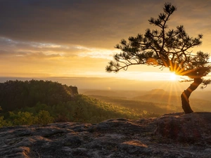 viewes, Snowy, Hill, trees, winter
