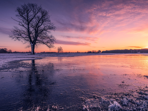 Sunrise, field, viewes, Nice sunflowers, trees, Narrow-Leaf Lavender