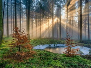 trees, winter, clouds, Sunrise, viewes, snowy