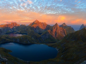 Děčínská vrchovina, rocks, rays of the Sun, trees, Sunrise, Saxon Switzerland National Park, Germany, viewes