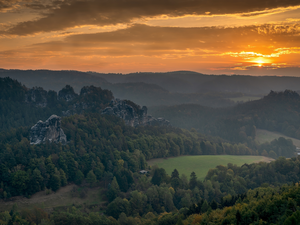 trees, Almsee Lake, Great Sunsets, Mountains, winter, viewes, Austria