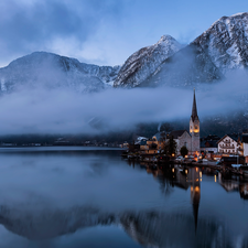 River, frosty, log, trees, laying, Fog, winter, viewes