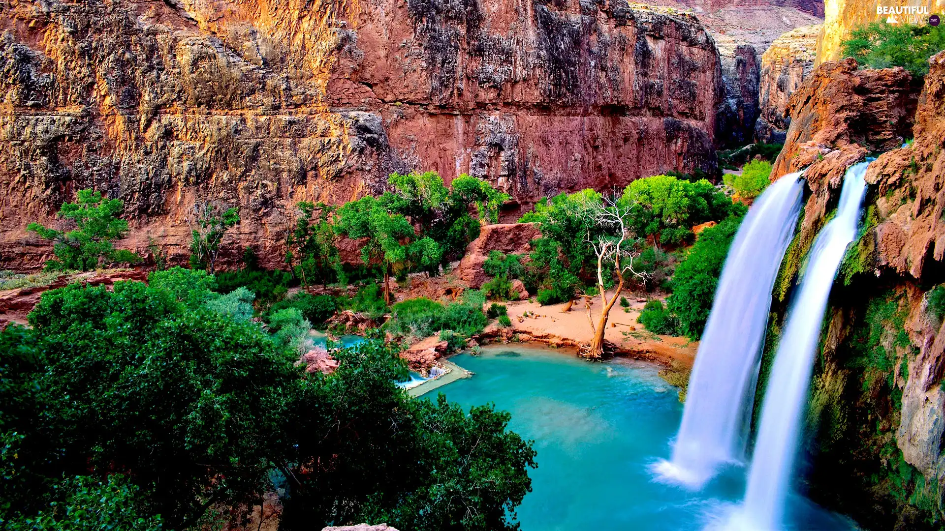 trees, Havasu Falls, Arizona, The United States, viewes, rocks