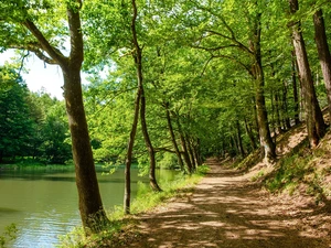 Sunrise, Hill, viewes, Church of St. Peter, trees, Village Begunje on Gorenjsk, Slovenia, Way
